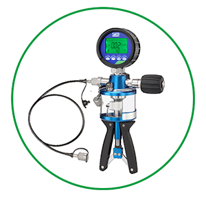 - De pompes manuelles pneumatiques de type P40.2 qui permettent de générer des pressions allant de -0,95 à 40 bars. Elles sont destinées aux étalonnages sur site et en laboratoire et possèdent un dispositif de réglage fin pour des résultats optimaux. Leur fonctionnement avec de l’air permet de ne pas contaminer les appareils à vérifier.